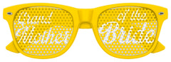 Celebrate in style with these bold sunglasses featuring a see-through GRAND MOTHER OF THE BRIDE design on the lenses. The micro-perforated pattern keeps your vision clear while adding a fun, photo-ready touch to your look. Perfect for bachelorette parties, wedding weekends, and matching bridal-party outfits. Lightweight, comfortable, and guaranteed to stand out in every picture.