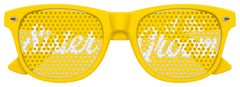 Celebrate in style with these bold sunglasses featuring a see-through SISTER OF THE GROOM design on the lenses. The micro-perforated pattern keeps your vision clear while adding a fun, photo-ready touch to your look. Perfect for bachelorette parties, wedding weekends, and matching bridal-party outfits. Lightweight, comfortable, and guaranteed to stand out in every picture.